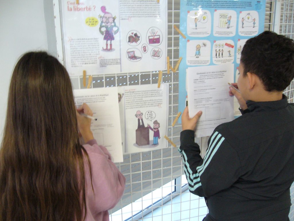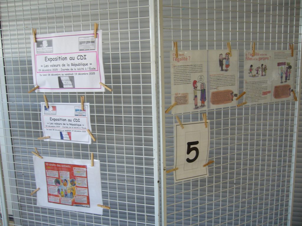 Dans le cadre de la Journée de la laïcité à l’École de la République, du mardi 09 décembre 2025, tous les élèves des classes de 6e sont venus au CDI, pour compléter un questionnaire avec leur professeur d’histoire-géographie. Ces élèves ont ainsi répondu à un questionnaire pendant un cours d’Éducation Morale et Civique (EMC), ayant pour thème : « Laïcité et valeurs de la République ».